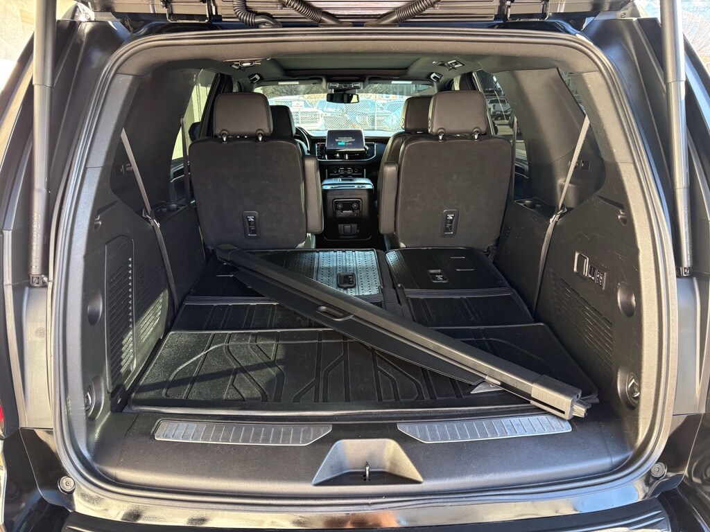 Max Trailering Package: Extra Capacity Cooling System. Advanced Trailering Package: Smart Trailer Integration Indicator; Integrated Trailer Brake Controller; Hitch Guidance with Hitch View. Driver Alert Package: Rear Cross Traffic Alert; Lane Change Alert with Side Blind Zone Alert. Luxury Package: HD Surround Vision; Heated 2nd Row Outboard Seats; 2nd Row Power Release 60/40 Split-Folding Bench Seat; Memory Settings; Power Tilt and Telescopic Steering Column; Rear Pedestrian Alert; Heated Steering Wheel; 3rd Row 60/40 Power-Folding Split-Bench Seat; Outside Heated Power-Adjustable Mirrors. Preferred Equipment Group 2Z7: Bright Front and Rear Door Sill Plates; Leather-Appointed Seat Trim; Remote Start; Hill Descent Control; 20" X 9" Machined Aluminum Wheels; Floor Console with Storage Area; Black Tubular Assist Steps; LED Daytime Running Lamps; Driver and Front Outboard Passenger Airbags; Memory Settings For Driver; Wireless Charging; Front High-Back Reclining Bucket Seats; Universal Home Remote; Color-Keyed Carpeting Floor Covering; Front Skid Plate; Front High-Approach Angle Fascia; Hands-Free Rear Power Programmable Liftgate; Chevrolet Infotainment 3 Premium System Radio; Bose 9-Speaker Stereo Audio System Feature; 2-Speed Active Electronic Autotrac Transfer Case; 1st and 2nd Row Color-Keyed Carpeted Floor Mats; Enhanced Driver Information Center; Red Horizontal-Mounted Recovery Hooks; SiriusXM Radio with 360L; Wrapped Steering Wheel; 275/60R20SL AT BW Tires; Infotainment Display; Auto-Dimming Inside Rearview Mirror. Dual-Pane Power Panoramic Sunroof. Black Roof Rack Cross Rails. Black Illuminated Front Bowtie Emblem. Power Release 2nd Row Bucket Seats. Floor Console. Cargo Security Shade. Sport Pedal Cover Kit. All-Weather Cargo Mat. Trailer Tire Pressure Monitor Sensors. **Equipment listed is based on original vehicle build and subject to change. Please confirm the accuracy of the included equipment by calling the dealer prior to purchase.**
