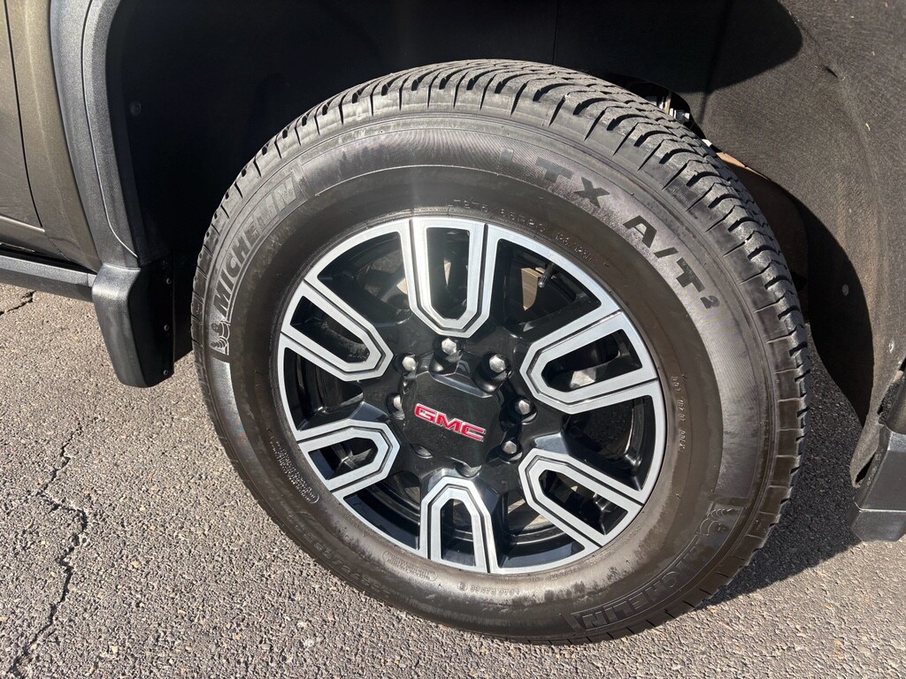 Driver Alert Package I: Ultrasonic Front and Rear Park Assist; Rear Cross Traffic Alert; Lane Change Alert with Side Blind Zone Alert; Perimeter Lighting. Driver Alert Package II: Forward Collision Alert; Following Distance Indicator; Automatic Emergency Braking; Safety Alert Seat; IntelliBeam Automatic High Beam On/off; Lane Departure Warning. AT4 Preferred Package: HD Surround Vision with 2 Trailer View Camera Provisions; Bose Premium 7 Speaker Sound System; Power Sliding Rear Window with Defogger; LED Smoked Amber Roof Marker Lamps; Wireless Charging; Bed View Camera with Two Trailer Camera Provisions; Universal Home Remote; AM/FM Stereo with Premium GMC Infotainment System and Navigation. AT4 Premium Plus Package: Power Sunroof; 20" Machined Aluminum Wheels. Technology Package: 8" Driver Information Center; Multicolor 15" Diagonal Head-Up Display; Auto-Dimming Inside Rearview Mirror with Camera. Preferred Equipment Group 4SB: HD Rear Vision Camera; LED Cargo Area Lighting; Remote Vehicle Starter System; 2 USB Ports (first Row); Electric Rear-Window Defogger; Wireless Phone Projection; Floor-Mounted Center Console; Painted Black Surround Grille with High Gloss Black Mesh; Unauthorized Entry Theft-Deterrent System; Compass Located in Instrument Cluster; 4.2" Diagonal Color Display Driver Info Center; Electrical Lock Control Steering Column; 120-Volt Instrument Panel Power Outlet; Heated Driver and Front Outboard Passenger Seats; X31 Off-Road Package; Premium Front Floor Liners with Removable Carpet Insert; Steering Wheel Audio Controls; Premium Rear Floor Liners with Removable Carpet Insert; GMC Connected Access Capable; OnStar and GMC Connected Services Capable; 120-Volt Bed Mounted Power Outlet; Heated 2nd Row Outboard Seats; Power Front Passenger Windows with Express Up/down; 2-Speed Active Transfer Case; Deep-Tinted Glass; Spray-On Pickup Bed Liner with AT4 Logo; Power Rear Windows with Express Down; Red Recovery Hooks; Integrated Trailer Brake Controller; Power Front Windows with Driver Express Up/down; Ventilated Driver and Front Passenger Seats; Manual Tilt-Wheel/telescoping Steering Column; 2nd Row Dual USB Charge-Only Ports; Keyless Open and Start; Wi-Fi Hotspot Capable; ProGrade Trailering System; Rear Wheelhouse Liners; 12-Volt Rear Auxiliary Power Outlet; 2 USB Ports Inside Console; Power Door Locks. Gooseneck/5th Wheel Package: Gooseneck/5th Wheel Prep Package; Bed View Camera with Two Trailer Camera Provisions. Power-Retractable Black Assist Steps. 3 Years of OnStar & Connected Services Pl
